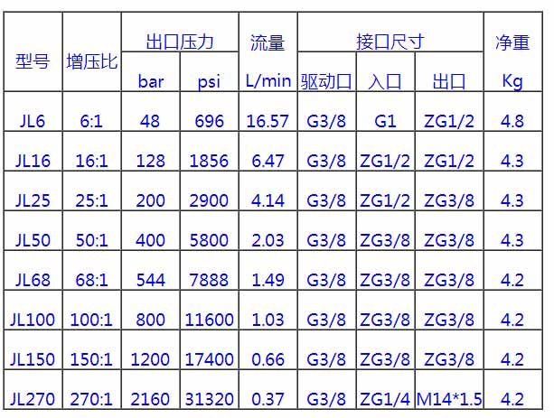 一、增壓比為驅動活塞面積/液壓柱塞面積
